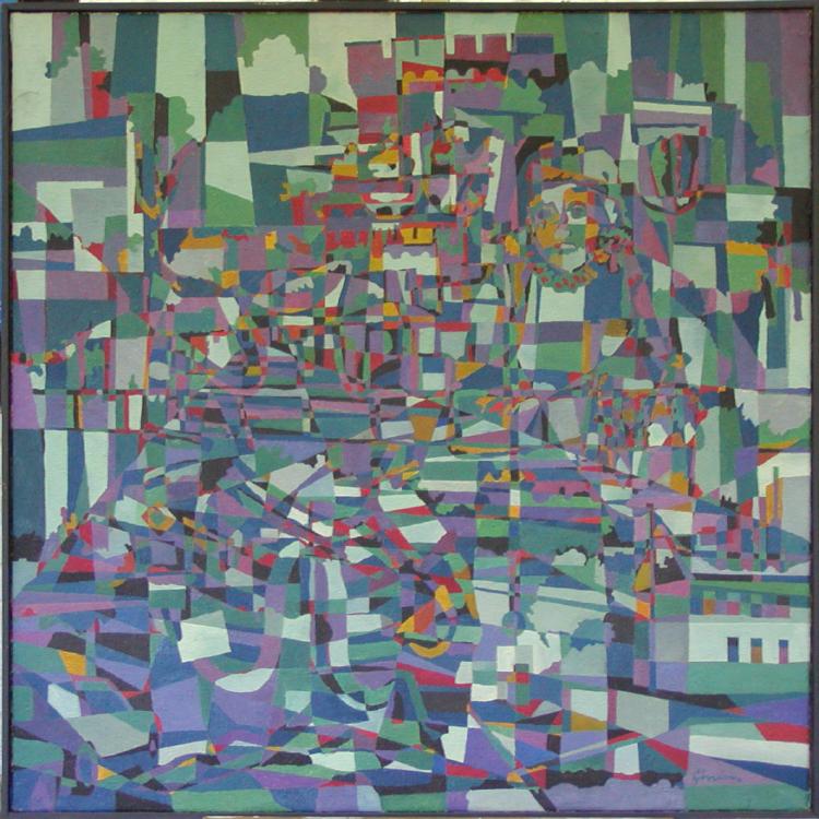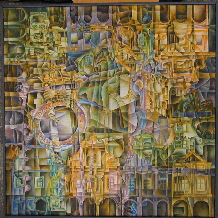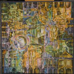malpa's stadt; 1993; 100x100 oel auf leinwand